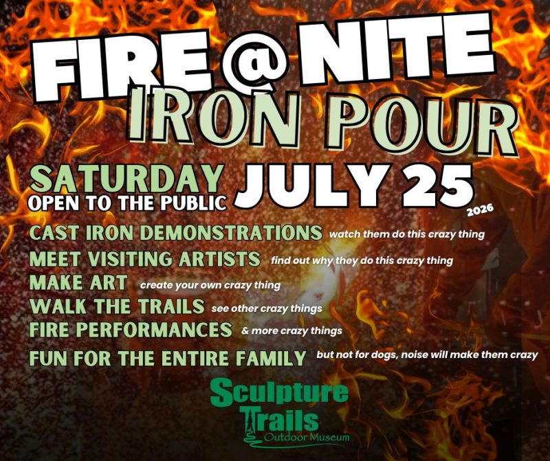 Join us for our Fire@Nite public event on July 25th from 2-10 pm! Experience the unique art form of cast iron as the Trails Artists create stunning performances throughout the day. Explore the extensive collection of sculptures while hiking the Trails.